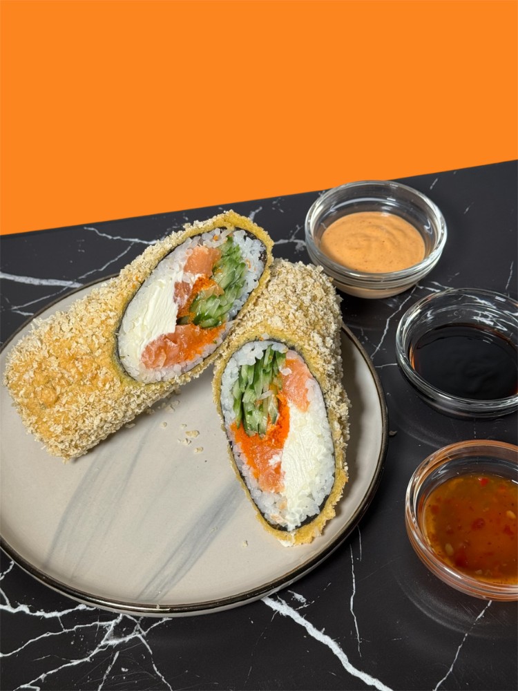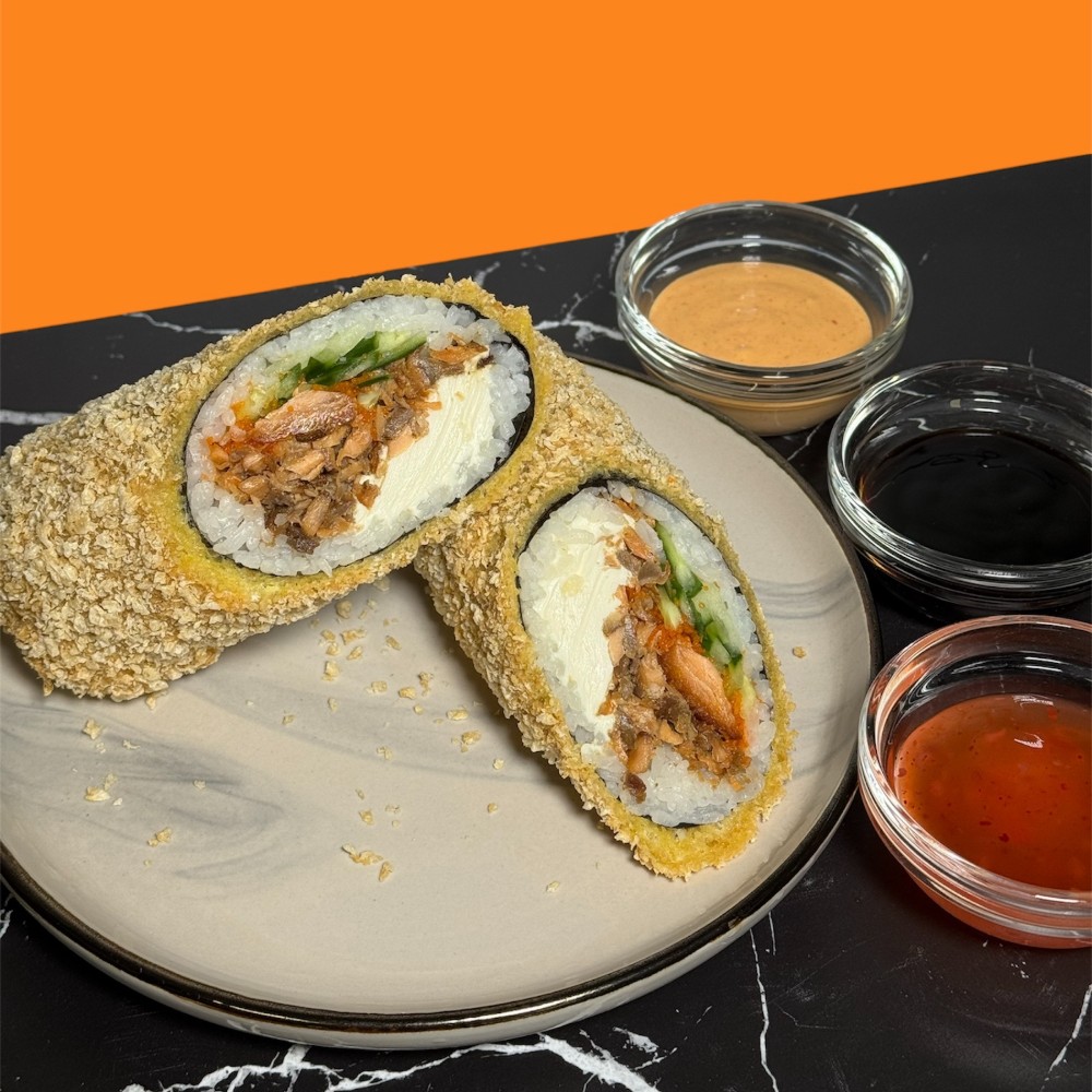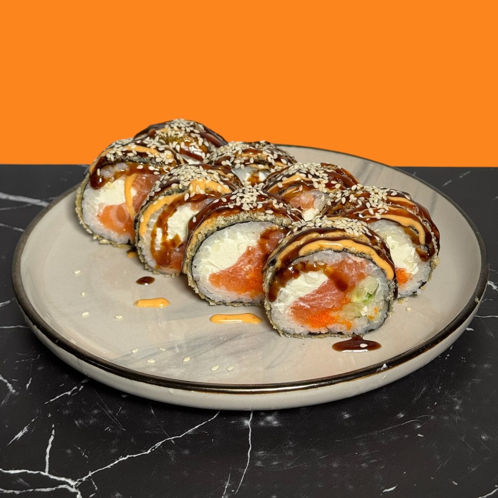 Смажений рол з лососем